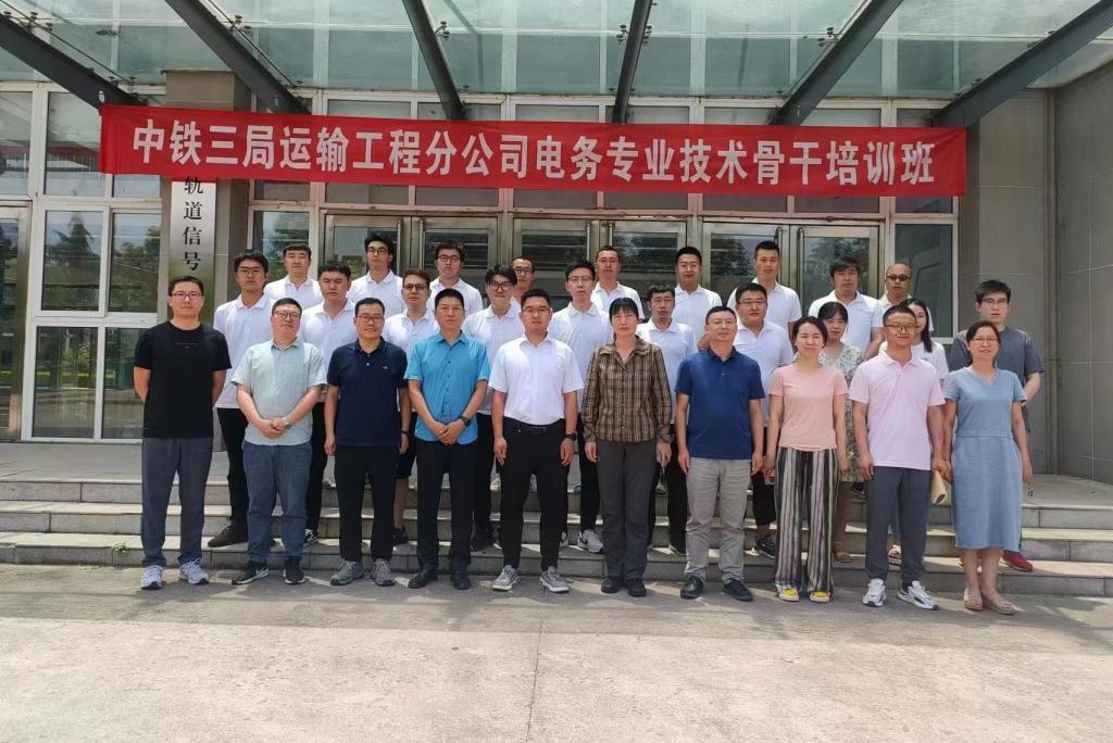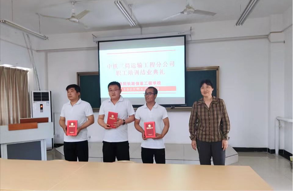 在校企双方领导的大力支持下,在校企合作部积极协调沟通下,由轨道信号工程系承办为期十天的中铁三局运输分公司电务专业技术骨干培训圆满结束,16名技术骨干顺利结业。6月15日,轨道信号工程系在一教238举行结业典礼。校纪委书记郭青、副校长李力厚、轨道信号工程系主任张建平、校企合作部副部长寇斌、中铁三局运输工程分公司工务电务部副部长王虹鼎,培训教师代表及全体学员参加了本次典礼,仪式由轨道信号工程系副主任李福建主持。