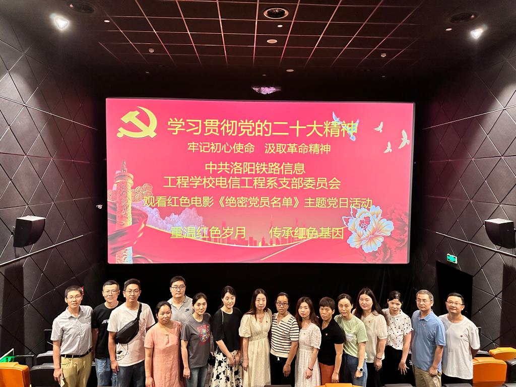 为深入学习贯彻习近平新时代中国特色社会主义思想和党的二十大精神,进一步加强党员党性修养,弘扬伟大建党精神,6月30日上午,电信工程系党支部组织开展“牢记初心使命 汲取革命精神”主题党日活动,全体党员集中观看红色电影《绝密党员名单》。