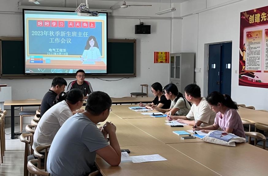8月18日下午,为保障2023级新生入学工作顺利开展,积极适应学校生活,电气工程系于一号教学楼338室组织召开了2023级班主任工作会议,全体2023级班主任参加。