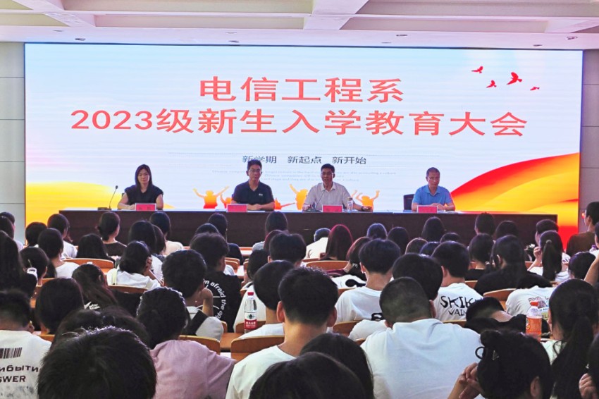 为指导和帮助新生尽快了解和适应新环境,8月22日至23日,电信工程系在思政大讲堂召开2023级新生入学教育大会,系主任张波、教学主任李军华、学管主任陈志坚和2023级全体新生参加会议,会议由团总支书记杨帆主持。