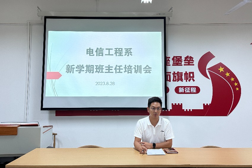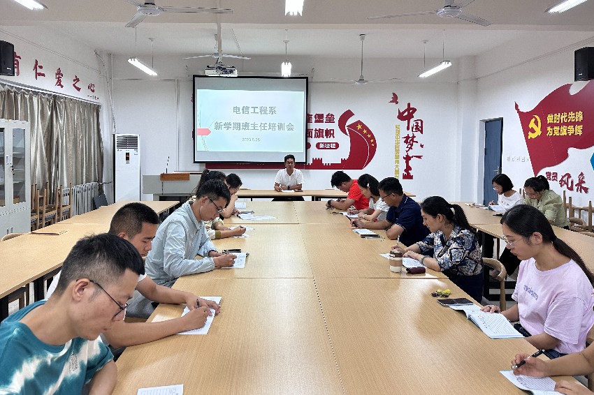 为充分发挥班主任在学生成长过程中的重要作用,进一步加强班主任队伍建设,8月29日,电信工程系在2号教学楼党员活动室召开新学期班主任培训会,学管主任陈志坚以及全体班主任参加会议。