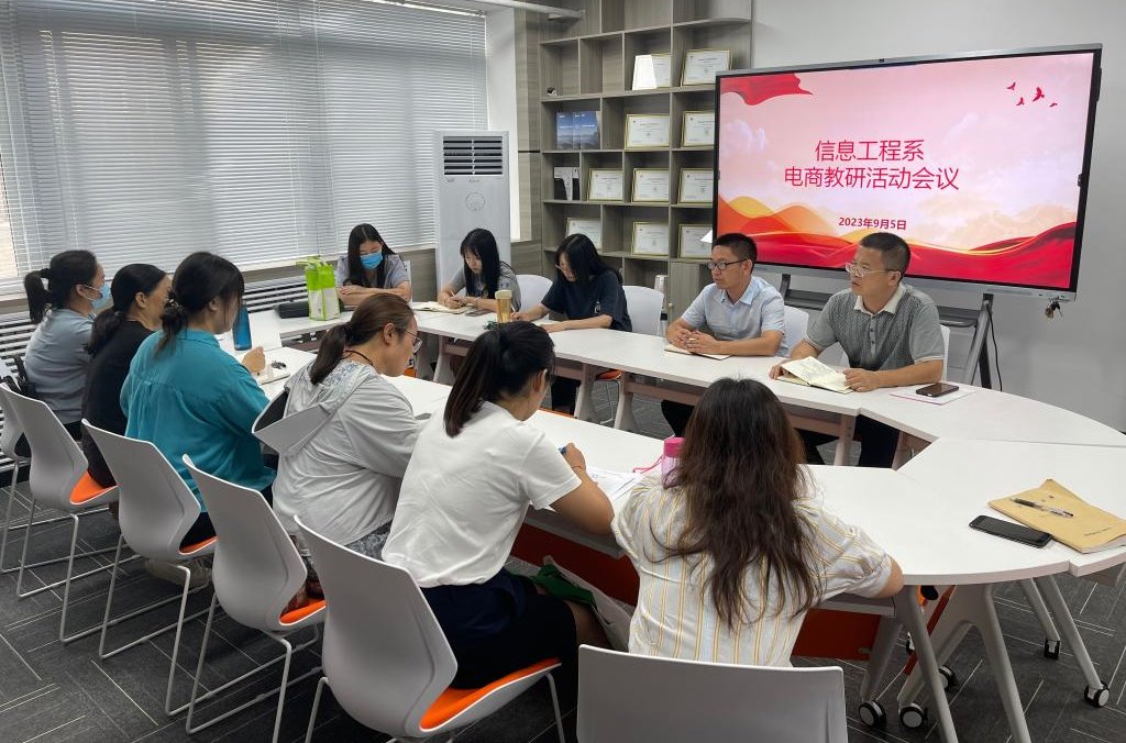 为了确保新学期教学工作有序进行,按照学校教学工作要求,传达学校教学工作会议精神。近日,信息工程系计算机教研室和电商教研室组织开展教研活动。会议由计算机教研室主任张智辉、电商教研室主任王宝刚主持,教学副主任郑波涛以及全体教师参与本次活动。