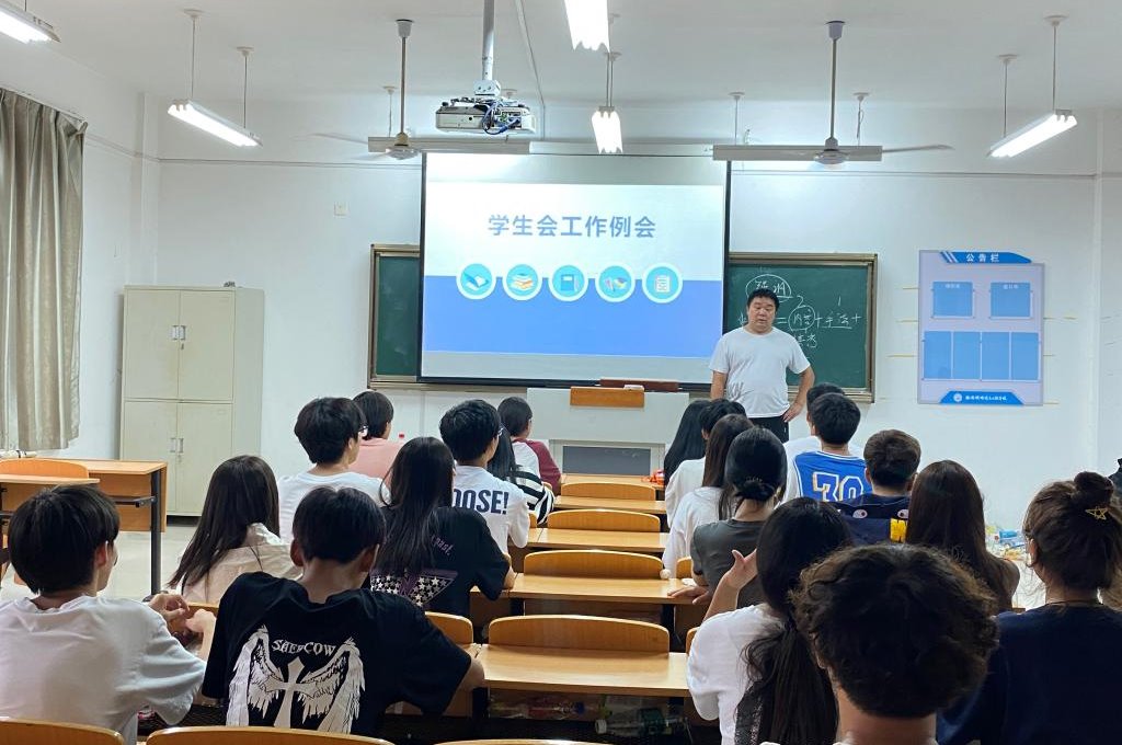 信息工程系学生会于9月12日在二号教学楼437教室召开了新学期学生会第一次工作例会,会议由信息工程系学管干事陈英堃主持,信息工程系学生会全体成员参加会议。