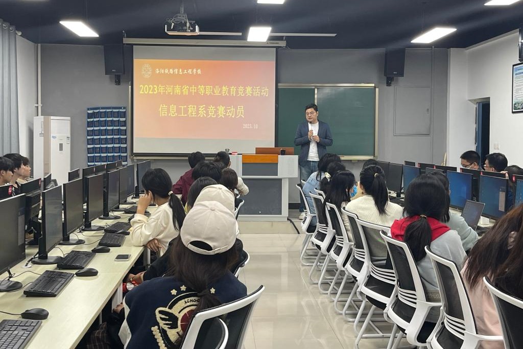 为进一步调动参赛学生的学习热情和学习动力,推动专业学科的赛教融合,10月18日下午,信息工程系举行了2023年度河南省中等职业教育竞赛赛前动员会。信息工程系主任邱智铖、计算机教研室主任张智辉、全体指导老师及参赛学生参加会议,教学主任郑波涛主持会议。