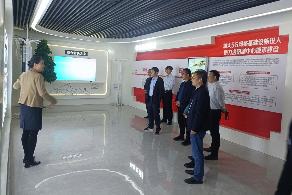 首先,在公司有关领导的陪同下,我校人员参观了中国铁塔展示厅,工作人员详细介绍了公司的发展历程、技术产品体系、洛阳市域通信铁塔建设及运营状况,还了解了洛阳铁塔智慧城市业务在智享、智联、智控等方面的应用成果。