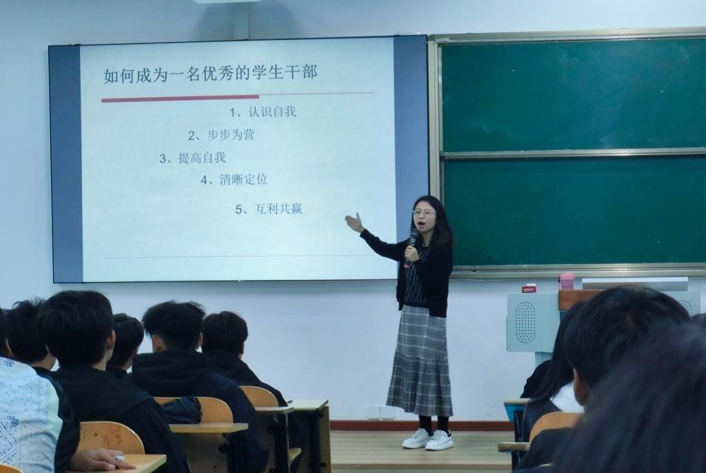 张建平从自身的角度和经历出发,围绕“怎样做好学生干部”,做出具体要求,一要以责谋事,勇挑重担,用心做好本职工作,不怯懦,不退缩;二要不忘初心,践行责任担当,发挥好师生间桥梁和纽带作用;三要有计划、有条理地安排时间,合理分配,平衡学习与工作的关系。