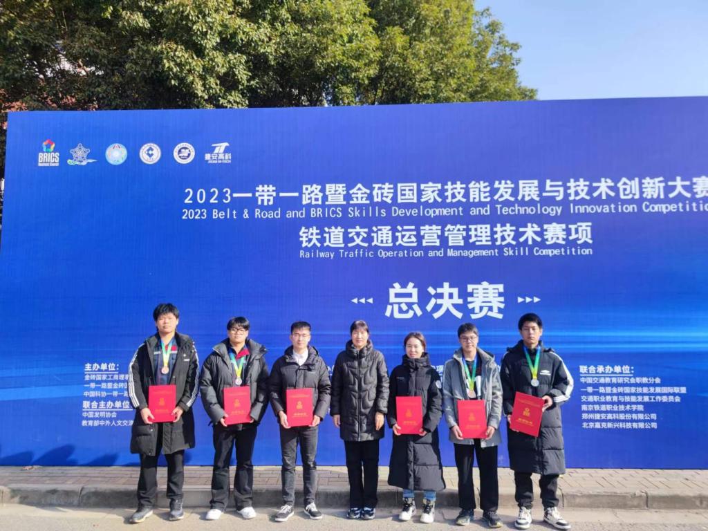12月5日至7日,2023年一带一路暨金砖国家技能发展与技术创新大赛铁道交通运营管理技术赛项全国总决赛在南京举行。本次大赛由一带一路暨金砖国家技能发展国际联盟主办。全国38所职业院校的团队汇聚金陵,152余名选手同台竞技,进行专业比拼。经过激烈而紧张的角逐,我校代表队在铁道交通运营管理技术赛项A模块荣获三等奖,B模块荣获二等奖。