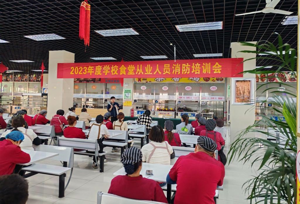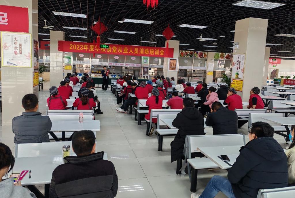 为加强学校安全管理工作,提高全体师生员工的消防安全知识和应对突发事件的能力,有效杜绝各类校园安全事故的发生。12月20日下午2点30分在校餐厅二楼,学工部与总务科共同开展了消防安全培训活动。总务科科长孙大庆、学工部部长李臻、安全中心主任鲍宇衡、16个部门安全员和餐厅全体工作人员参加了培训,由学工部肖敏主持。