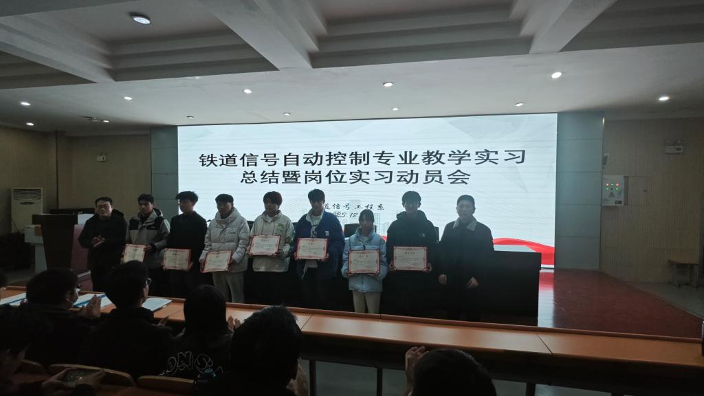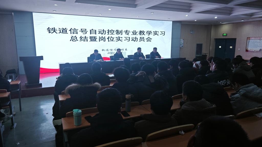 2023年12月18日下午,轨道信号工程系在思政大讲堂召开铁道信号自动控制专业教学实习总结暨2024年岗位实习动员会,校企合作部部长寇斌,轨道信号工程系党支部书记、系主任张建平,实习带队老师王哲及铁道信号自动控制专业全体学生参加,会议由教学主任李福建主持。