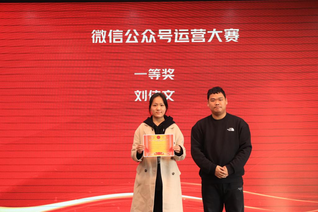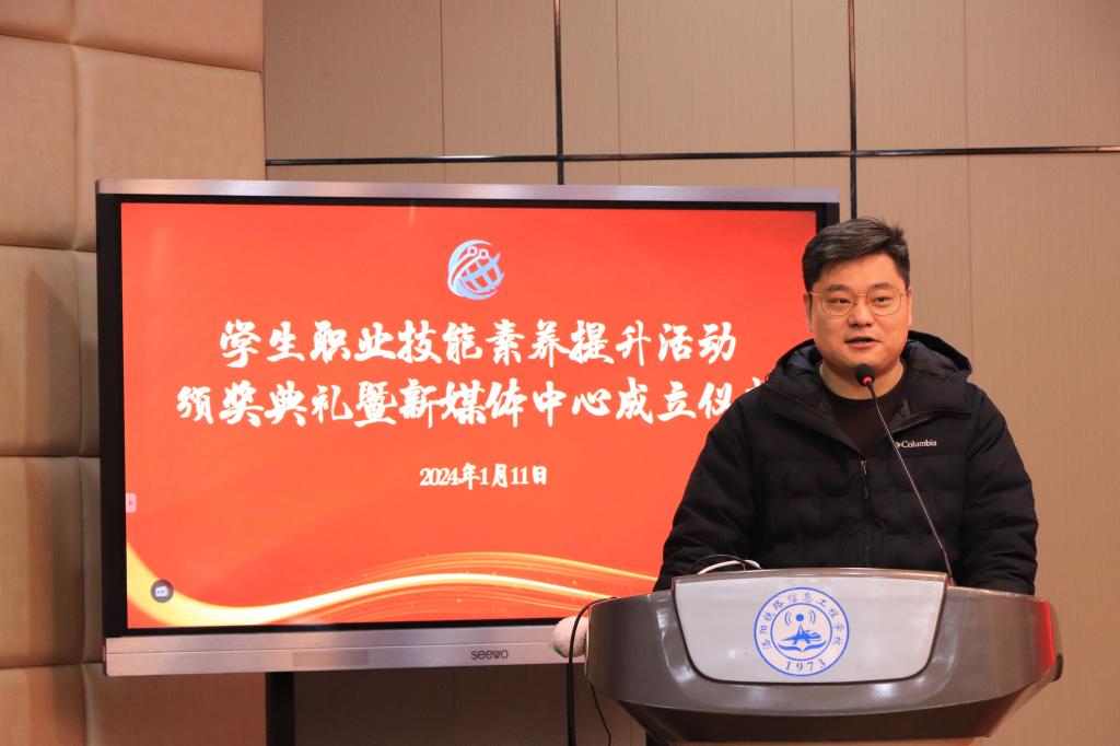 颁奖典礼上,参会领导分别为获奖选手及班级颁奖,获奖学生代表王豪怡发表获奖感言。邱智铖作总结发言,他表示,此次活动激发了同学们的创作潜能,检验了大家专业技能的学习,对获奖学生表示肯定,希望大家在参与各类活动过程中不断提高专业技能、掌握媒体技术,在新媒体中心这个平台中努力创新,施展才华,争做优秀的校园融媒体人,为信息工程系的宣传工作做出积极贡献。最后,他宣布信息工程系新媒体中心成立。