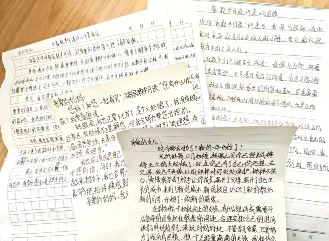 本次活动首先以组织家长和学生利用寒假时间共同收看河南省教育厅公众号“河南家教半月谈”系列公益讲座为契机,通过专家讲座让家长们能够更加重视家庭教育,了解高效合理的教育方式,更新教育理念。其次在活动开展过程中要求班主任老师积极参与,主动与家长沟通学生在校的学习与生活情况,增进了家长和班主任之间的沟通,增强了家校之间的教育合力。最后,为进一步推动亲子沟通,鼓励家长与学生通过书信的方式互诉衷肠,以此营造和谐融洽的家庭氛围,增进亲子间的情感联系,取得了很好效果。
