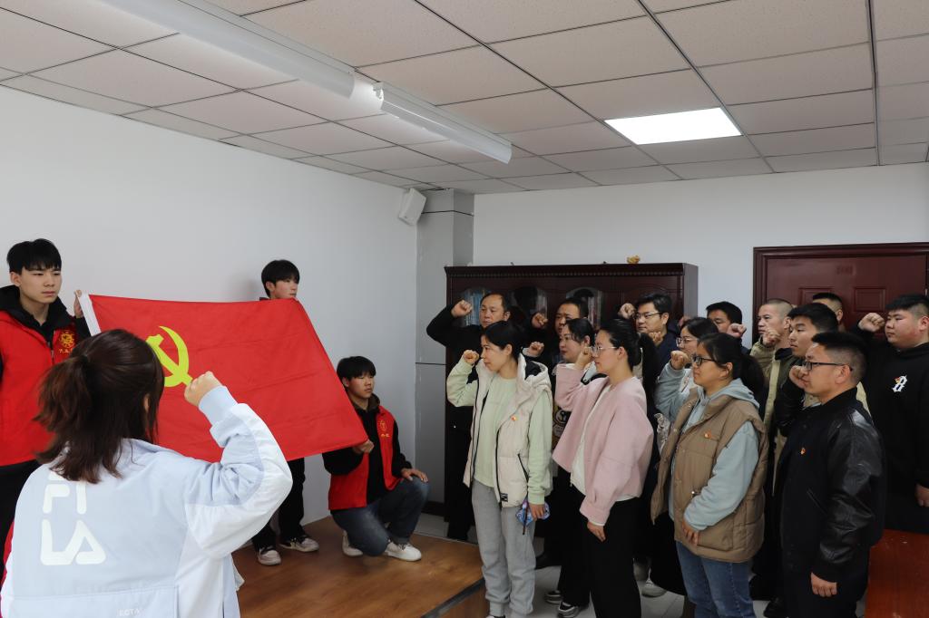 全体党员同志在会议室面向鲜红的党旗,高举右手,庄严宣誓,诠释了党员同志们坚定不移的政治信念和矢志奋斗的坚强决心。