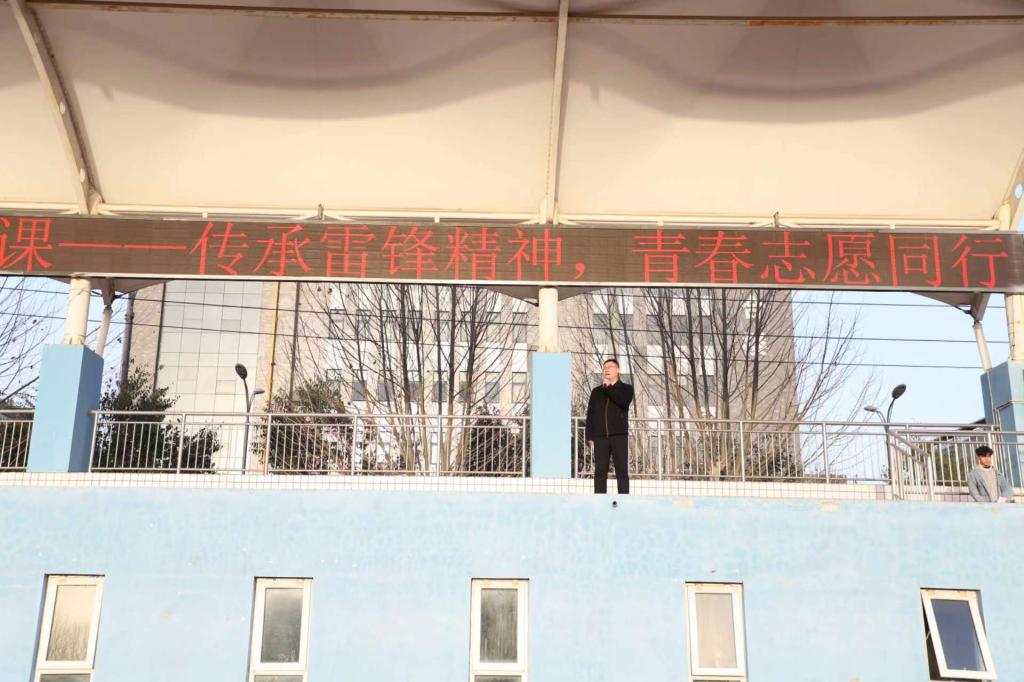 3月19日早,我校举行升旗仪式暨国旗下的思政课,本周主题为“传承雷锋精神,青春志愿同行”,全体班主任及在校学生参加仪式,副校长李力厚发表讲话。