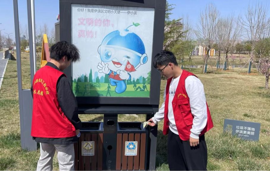 在欢歌笑语的行进中,同学们一边欣赏着沿途的美景,一边对吉庆路和光武大道上的共享单车进行了有序摆放,大家到达中央公园后,在老师的带领下,义务清扫沿线道路白色垃圾;河边的生活垃圾,同学们纷纷拿着扫帚、垃圾袋等清洁工具进行有序打扫。