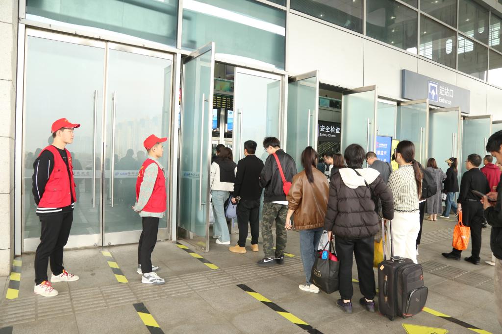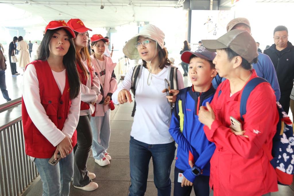 活动期间,我校将组织330名志愿者分批开展共计80多小时的志愿服务。目前轨道信号工程系学生已经到岗服务,志愿者在龙门高铁站出站口、进站口、出租车等点位进行秩序维护、行李搬运、引导问询等服务。