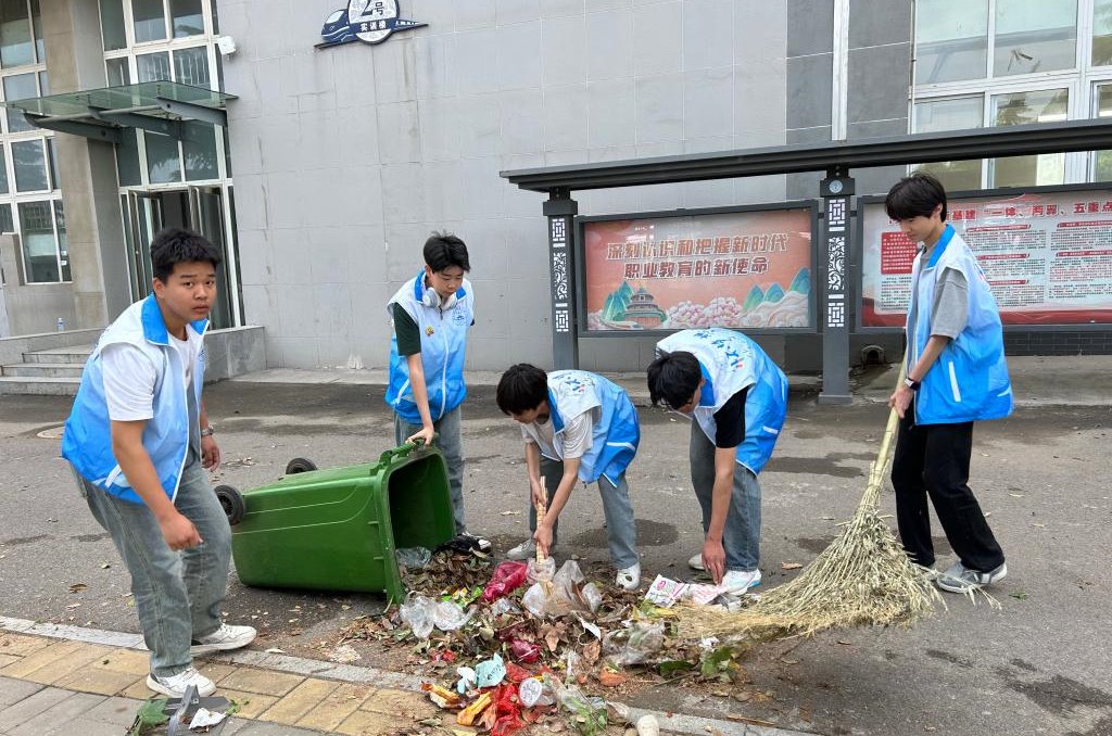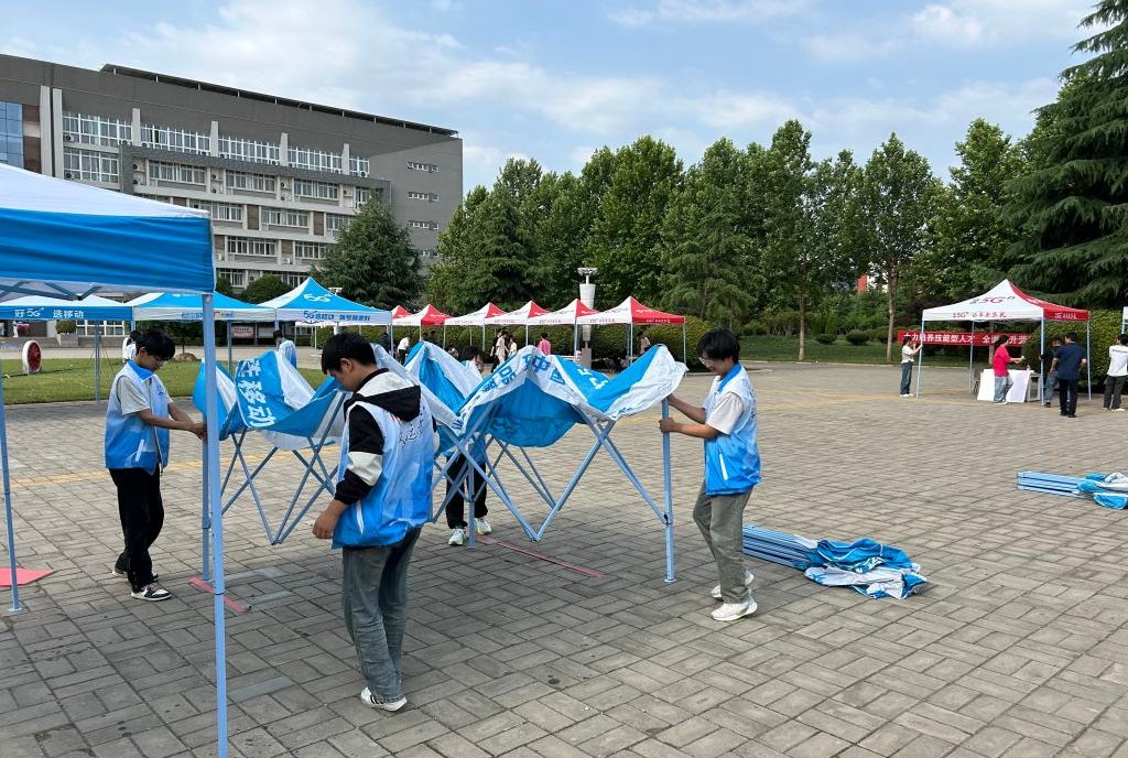 当日凌晨,因强对流暴风暴雨肆虐伊滨,校园内部分树枝折断,树叶散落遍地,为确保职教活动周顺利进行,能够给到校参观的学生、家长留下良好洛铁印象。7时许,公共教学部快速反应,立刻组织23级城轨01班和23级城轨02班参加劳动课的100余名学生紧急集合,提前到岗、提前开展作业,迅速清运校园广场和主干道的树枝、树叶等垃圾。同时,又按照原定计划,积极与校企合作部、校属各系(部)对接,帮助各部门搬运桌椅、展位棚子、宣传展板、专业器材等,为学校职教活动周顺利举行提供坚强支持。