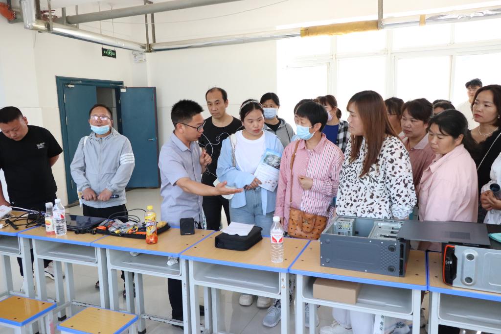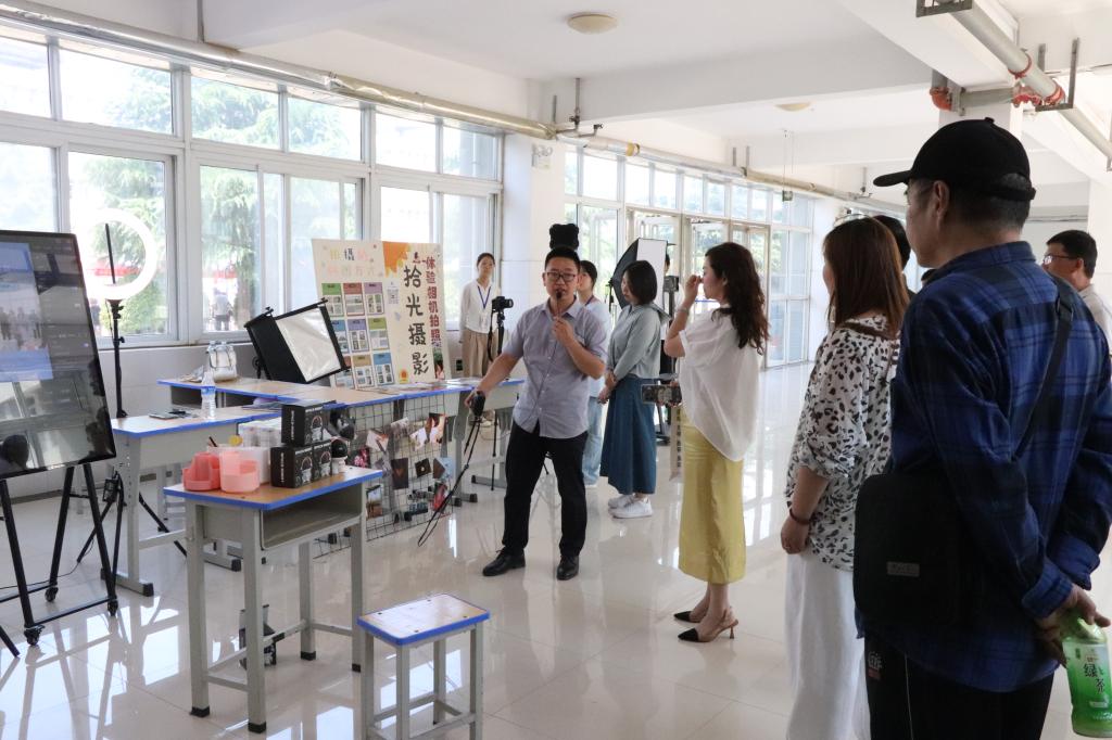 搭建直播平台,家长在专业教师的指导下,参与选品、拍摄、短视频、剪辑、直播互动等过程;搭建计算机组装实训台,还原计算机组装与维护现场,让家长参与计算机组装过程;拾光摄影社团还进行了作品呈现,并为参观家长提供证件照拍摄服务。通过这些实践体验,家长对学生的技能学习有了更直观的了解。