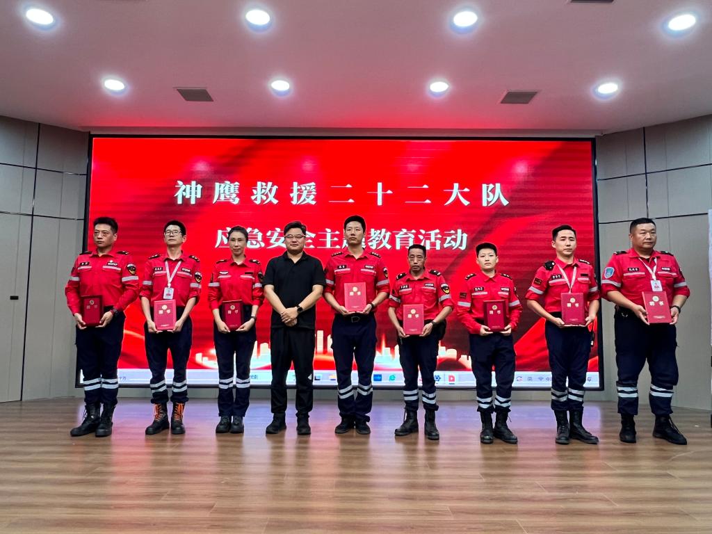 随后,邱智铖为神鹰救援队二十二大队颁发授牌,并为海佳林、张欣、张佳芮、张凌浩、魏玲、马珂、王永军、李剑锋等八位辅导员颁发聘书,聘任八人为应急安全进校园服务队辅导员。