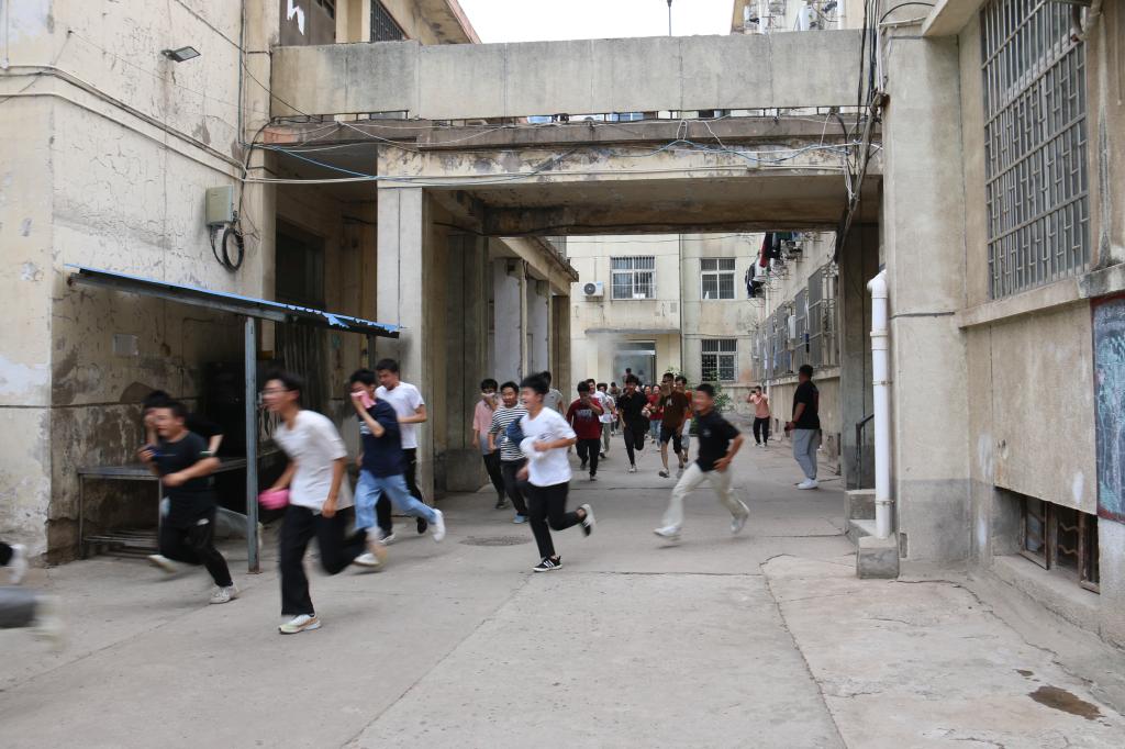 16点30分,随着警报声的响起,学生宿舍和教工办公楼烟雾弥漫看,全体教职工和学生迅速响应,按照预先制定的疏散路线,快速有序地撤离教学楼和宿舍区域,到达操场指定地点集合,各部门、各班级立即清点人数,确定无人滞留在 “着火”的建筑物内。在演练过程中,全校师生态度严谨,行动有序,配合密切,展现出较高的组织性、纪律性和应付突发事故的能力。