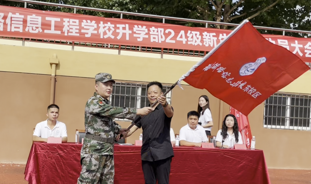 大会进行授旗仪式,史亚非向军训总教官授旗。