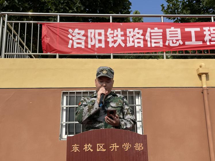 升旗仪式结束后,学工部部长徐晓盼宣读《洛阳铁路信息工程学校偃师校区(东校区)2024级学生军训方案》,详细介绍了军训的具体安排。军训总教官对军训提出了相关要求。