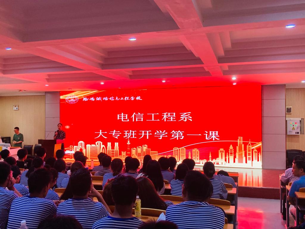 9月19日下午,电信工程系举办大专班“开学第一课”。校党委副书记、副校长于庆斌,教学工作部部长张波,电信工程系教学主任李军华、全体专任教师及24级新生和23级部分学生代表参会。会议由电信工程系主任李琼主持。
