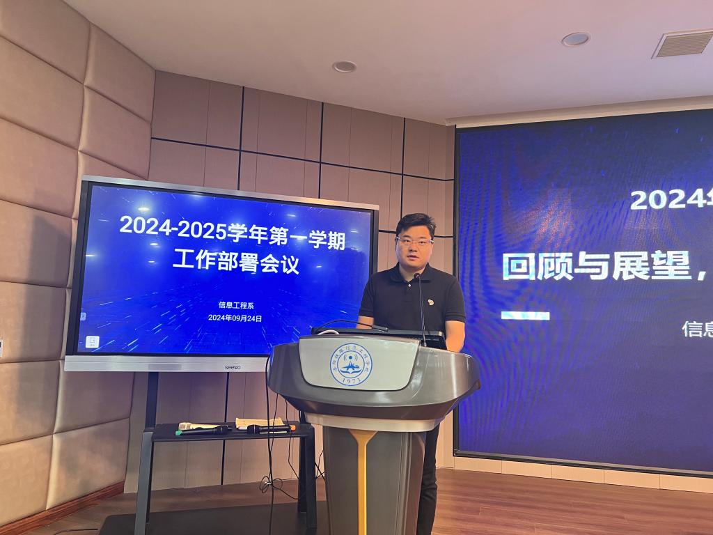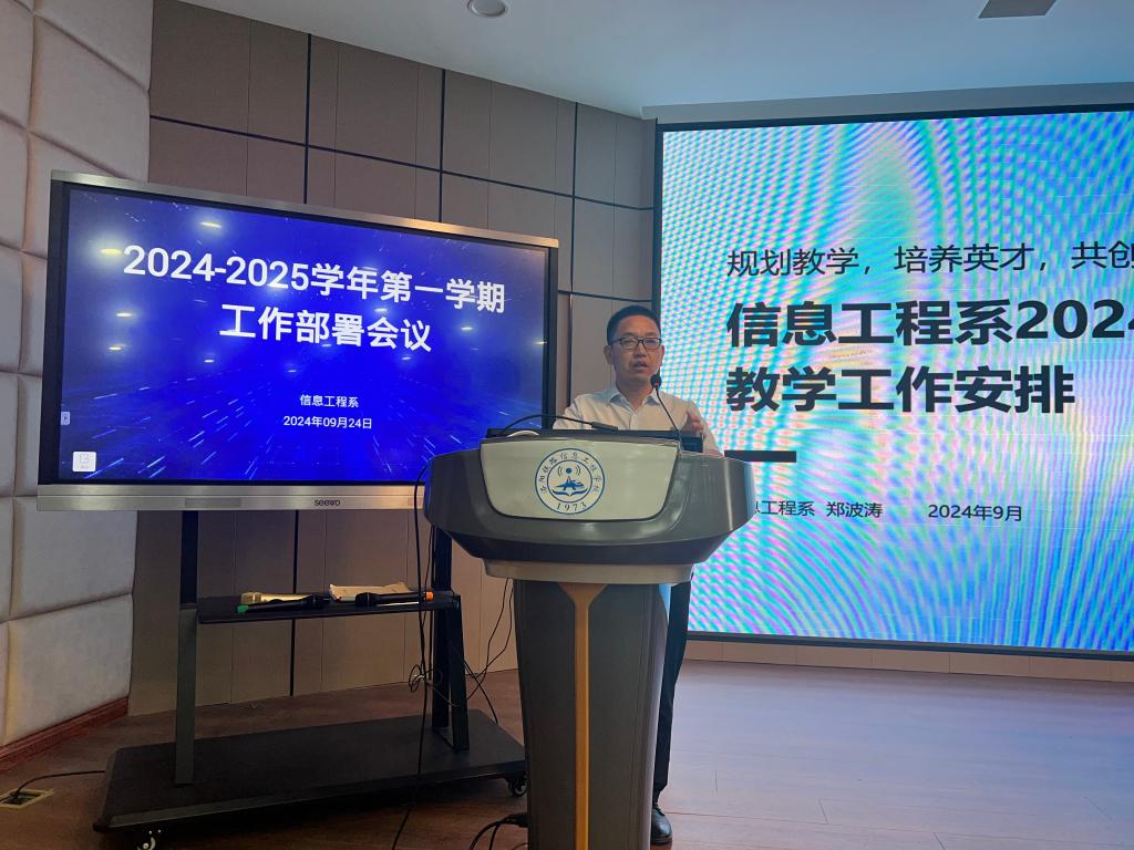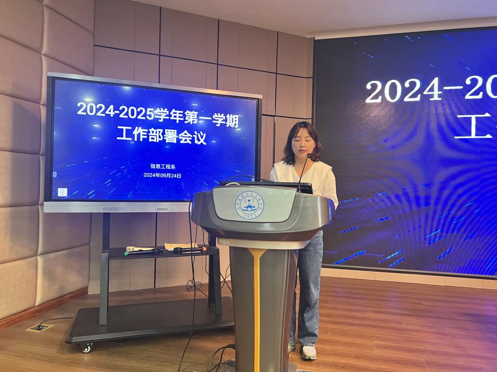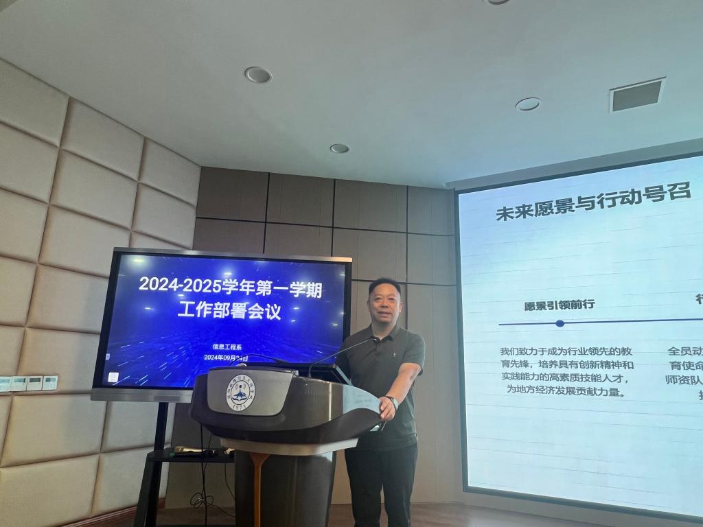 9月24日下午,信息工程系召开2024—2025学年第一学期工作部署会议。副校长史亚非、信息工程系主任邱智铖、教学主任郑波涛出席会议,信息工程系全体教师参会。会议由学管主任臧嘉琦主持。