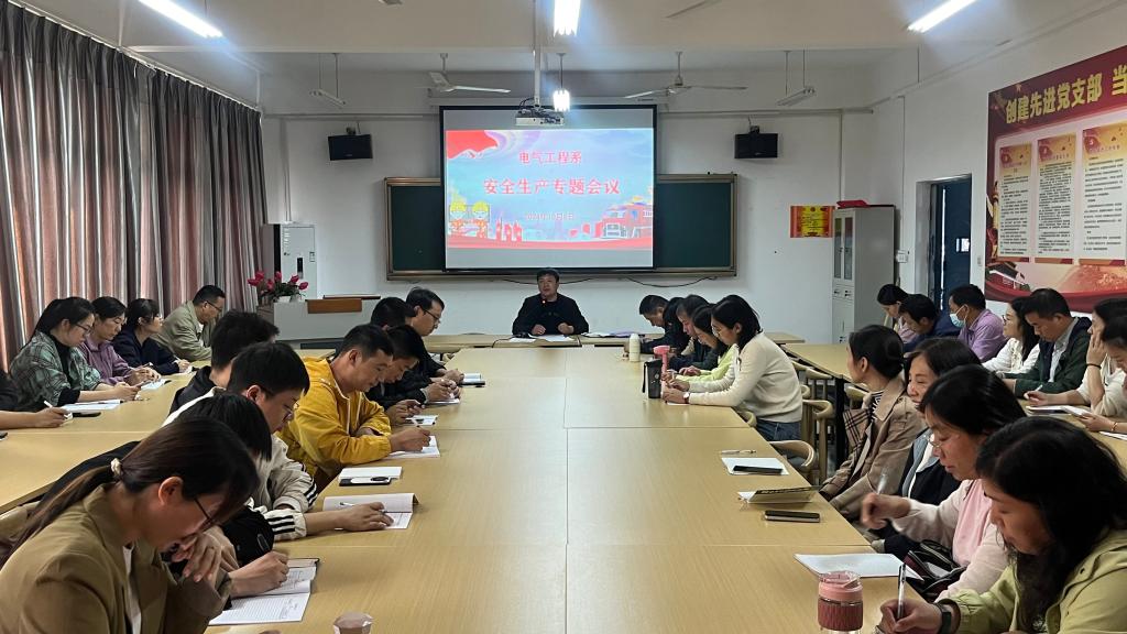 为深入贯彻全省教育系统安全工作会议精神,切实加强全系教职工对校园安全工作的认识,电气工程系于10月8日下午在1号教学楼338会议室召开安全生产专题工作会议。会议由系党支部副书记、学管主任姚建华主持,电气工程系全体教职工参加会议。