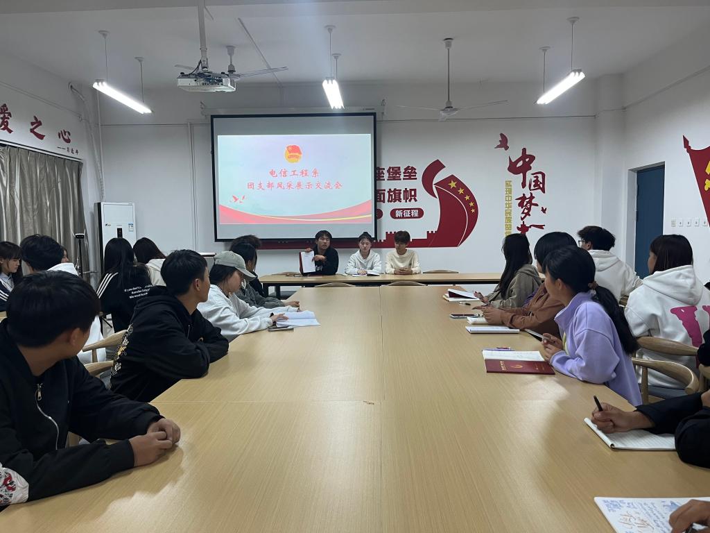 为进一步提升团支部活力,加强团支部建设,10月10日晚自习,电信工程系团总支在2号教学楼404教室和230党员活动室开展团支部分享交流活动,校团委书记杨帆、电信工程系团总支书记文茹出席。