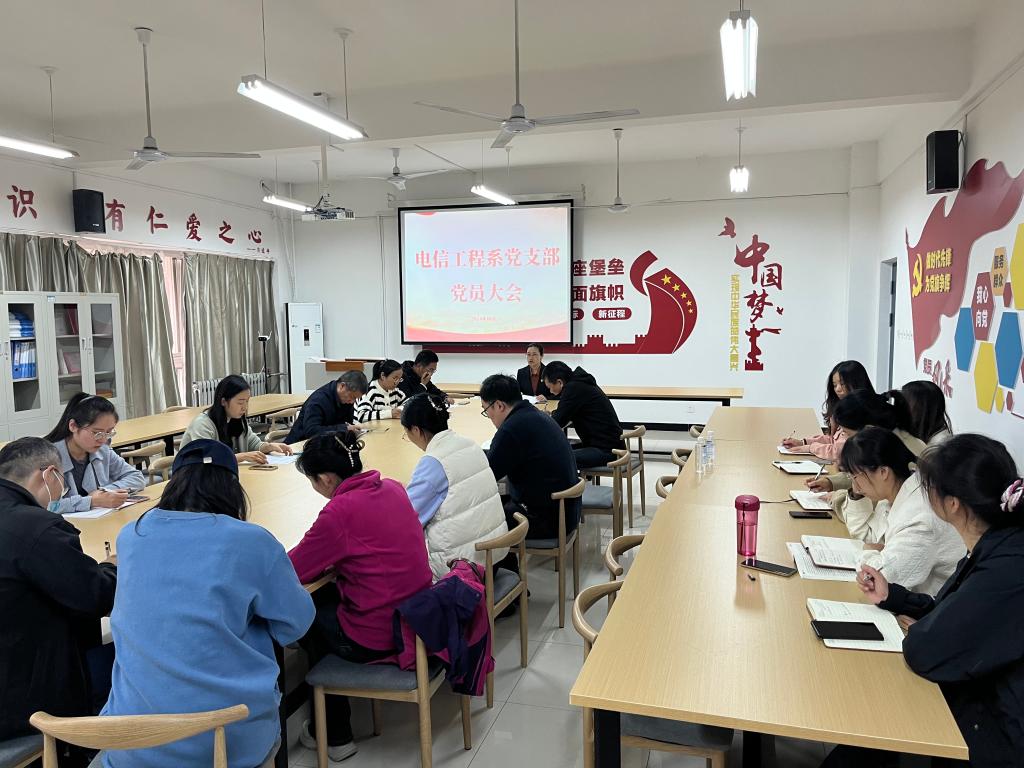 根据学校党委安排部署,10月30日下午,电信工程系党支部在二号教学楼二楼党员活动室,组织召开党员集中学习。党支部全体党员、预备党员、入党积极分子参加会议,会议由党支部书记李琼主持。