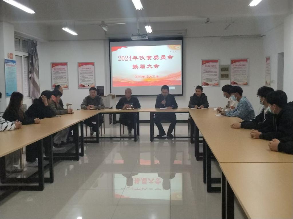 为加强我校伙食部门与广大师生间的联系,更好地督促食堂服务质量提升,促进食堂管理工作健康、有序、良性的发展,拓展饮食服务部门与师生信息传递的渠道。10月31日下午,在图书信息楼二楼会议室召开2024年伙食监督委员会换届会议。总务科、校团委、新一届伙委会成员、食堂监督管理人员以及河南厨和餐饮管理有限公司管理人员参加会议,会议由总务科副科长黄兆秋主持。