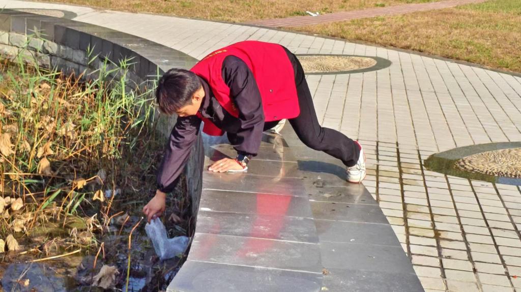 下午到达植物园,经过简短的安全提示和任务分配后,同学们以四人为一组,协助清理园内残留的垃圾,主动擦拭休闲座椅、路边指示牌,受到园区工作人员的认可。
