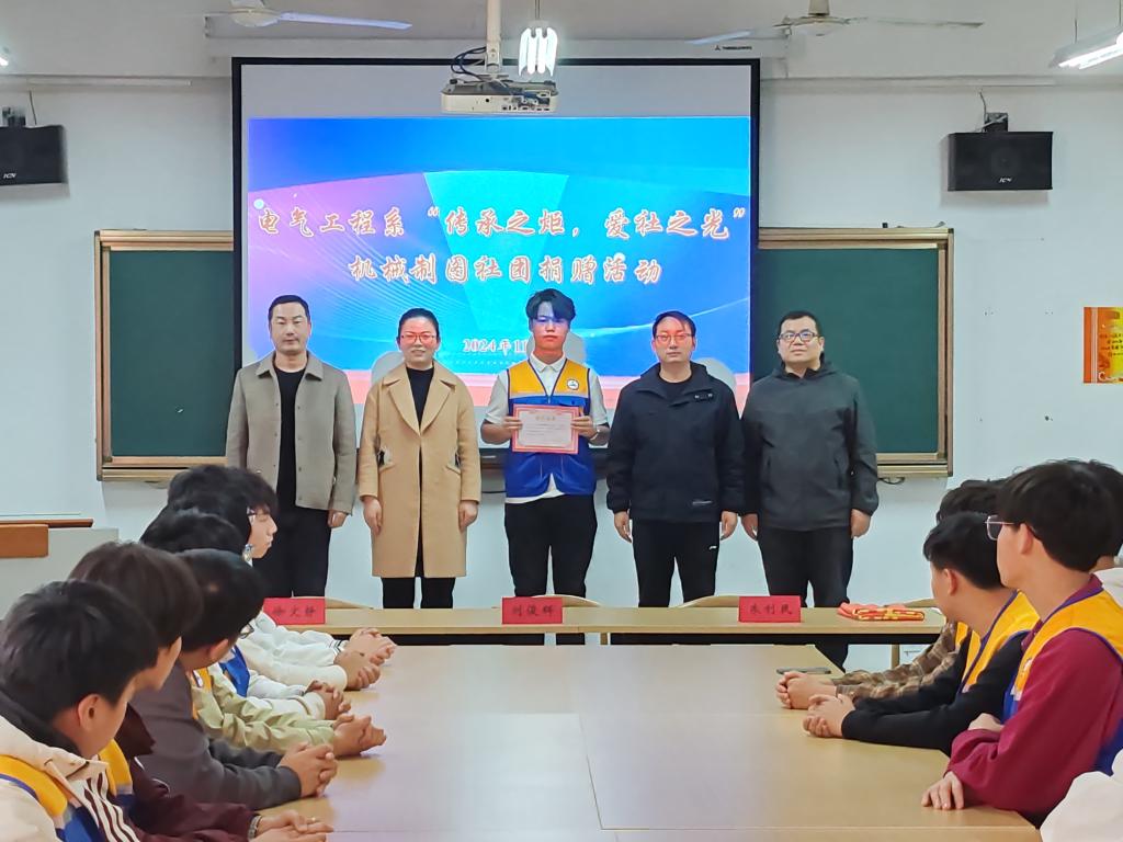 近期,电气工程系成功举办了 “传承之炬、爱社之光”— 机械制图社团捐赠活动。电气工程系党支部书记、主任段云冬,副主任姚建华、刘俊辉,社团指导教师徐文静,社团辅导教师朱利民、刘洋、丁泽瀚以及40余名新社员共同参加。