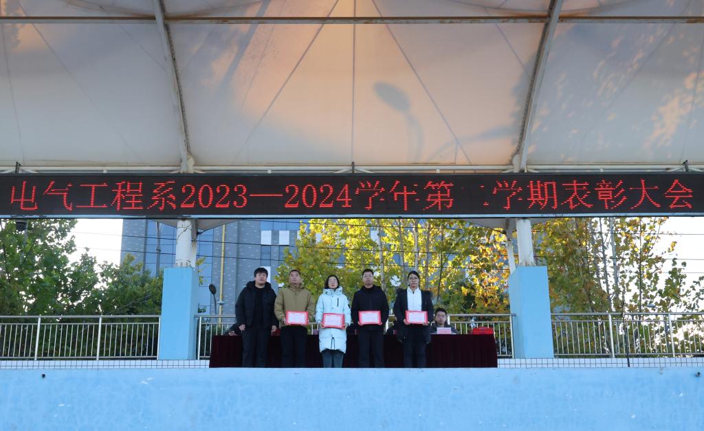 为表彰先进典型,激励广大师生奋勇拼搏,11月28日下午电气工程系组织召开2023-2024学年第二学期表彰大会。系教学主任刘俊辉、学管主任姚建华出席表彰大会,大会由系团总支书记靳国文主持。