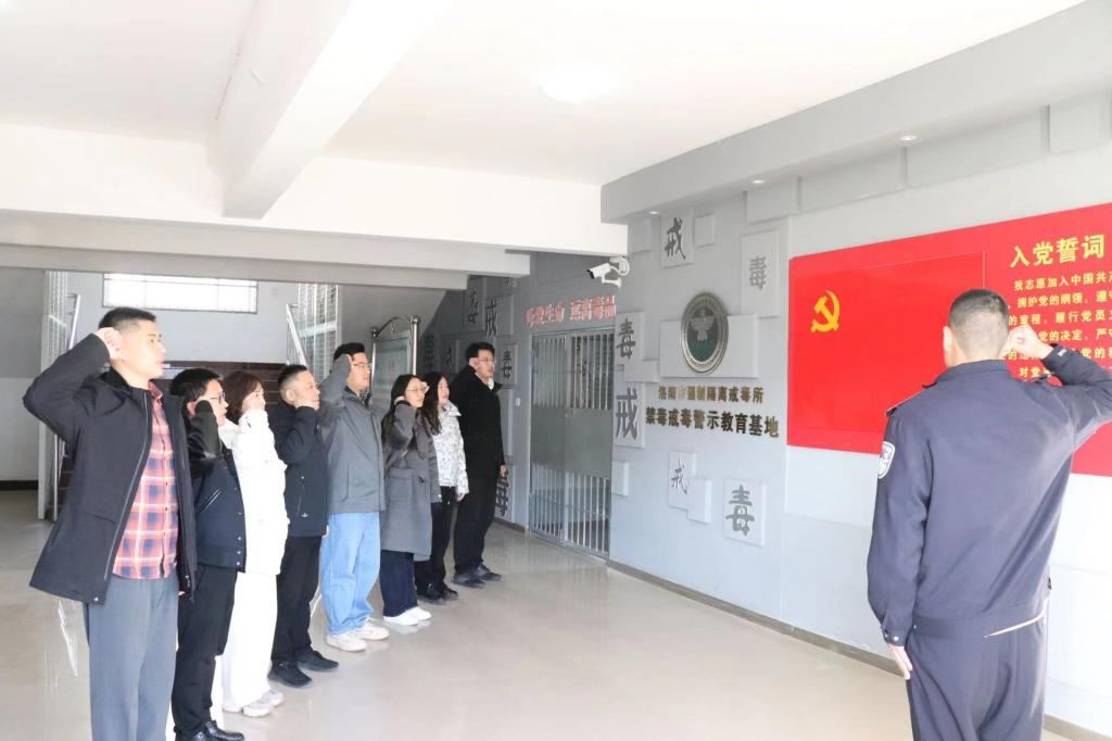 参观结束后,全体党员重温了入党誓词。在禁毒所警官的引领下,党员们举起右手,面对鲜红的党旗庄严宣誓,铿锵有力的誓言再次激发了党员同志的爱党爱国热情,坚定了理想信念。