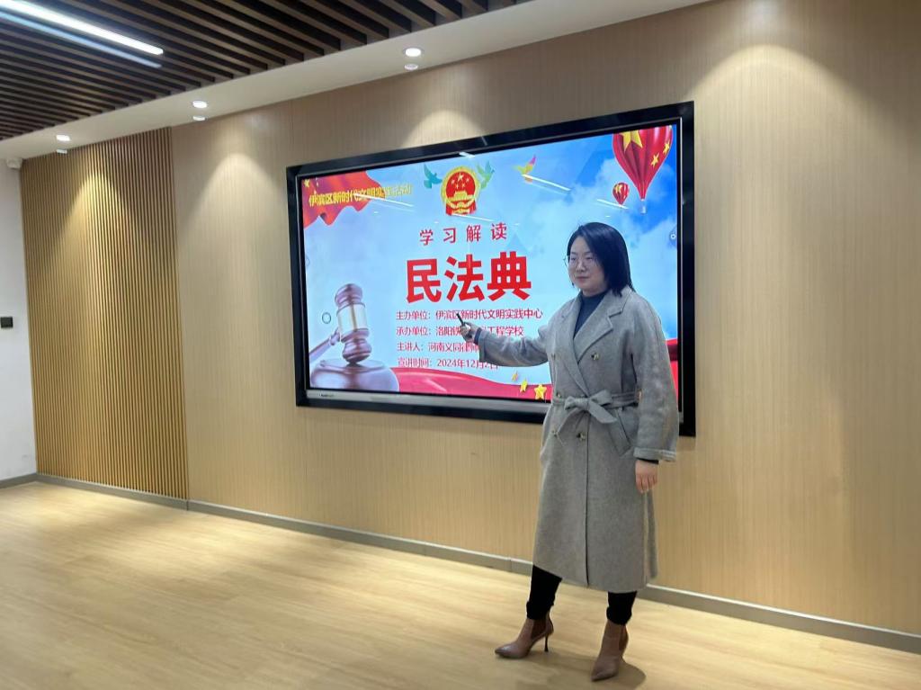12月2日下午,行政第一党支部前往伊滨区文明实践中心开展“宣传普及民法典 普法惠民暖人心”主题宣传活动。本次活动特别邀请了河南义同律师事务所李亚飞律师向群众详细解读《中华人民共和国民法典》相关法律知识,重点普及了婚姻家庭、民间借贷、财产继承等与群众生活密切相关的具体法律法规。