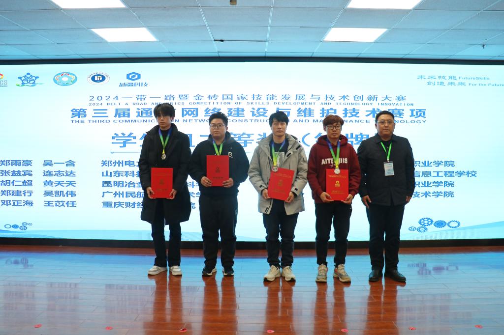 12月7日至8日,2024一带一路暨金砖国家技能发展与技术创新大赛“通信网络建设与维护技术”赛项全国总决赛在山东信息职业技术学院落下帷幕。经过激烈比拼,我校电信工程系参赛队伍王敬坤、李玉洁荣获学生组二等奖,学校被授予“优秀组织奖”称号。