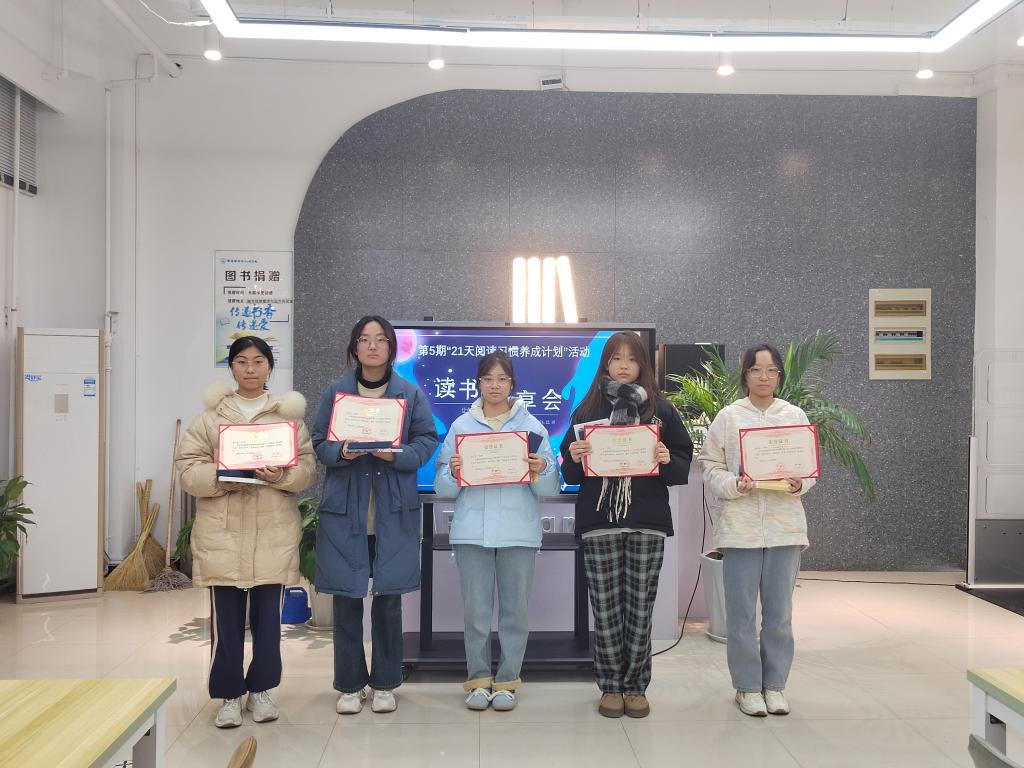 最后,图书馆老师根据活动读书打卡情况及读书分享会现场投票结果,评选出5名优秀读者,颁发了荣誉证书和文创纪念品。