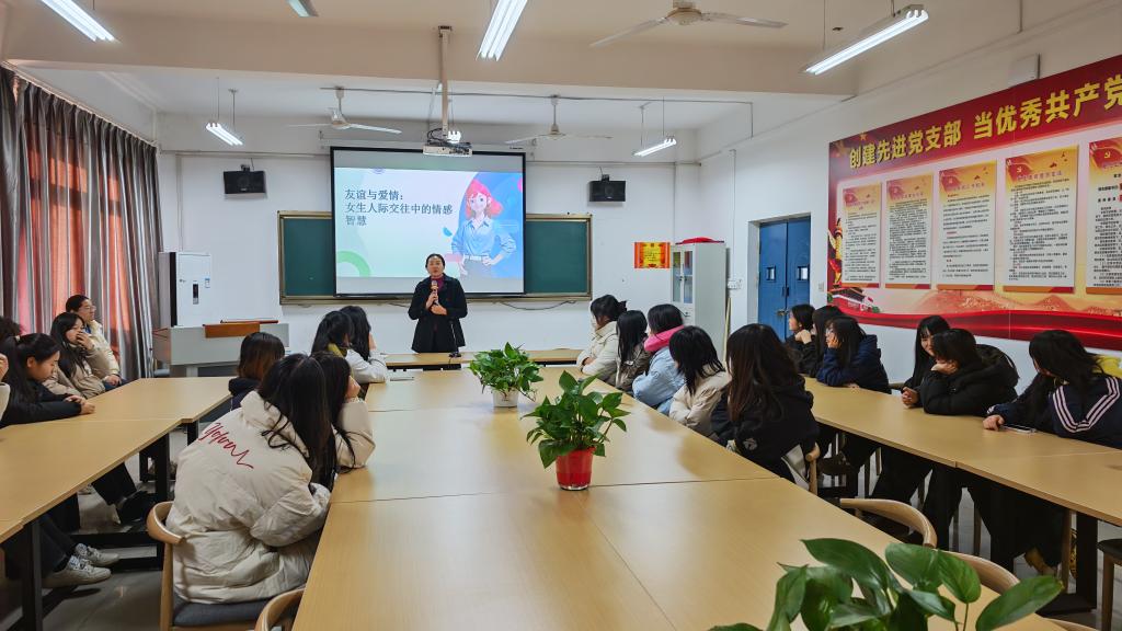 12月25日下午,电气工程系携手思政创新团队在1教338活动室举办“女生人际交往中的情感智慧”专题讲座。思政创新团队杜华老师主讲,电气工程系2023、2024级全体女生参加。