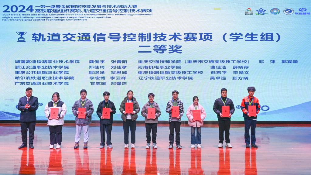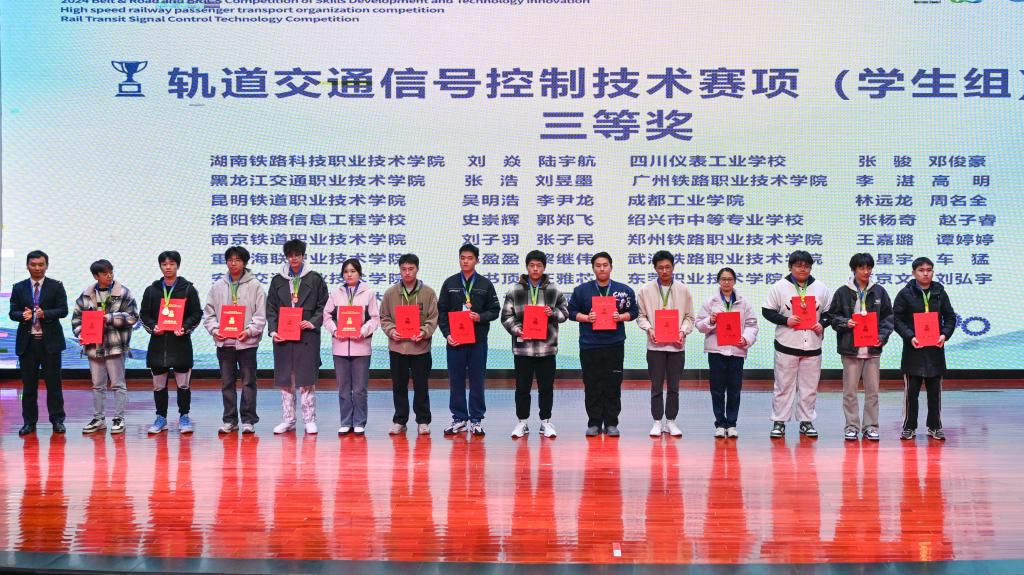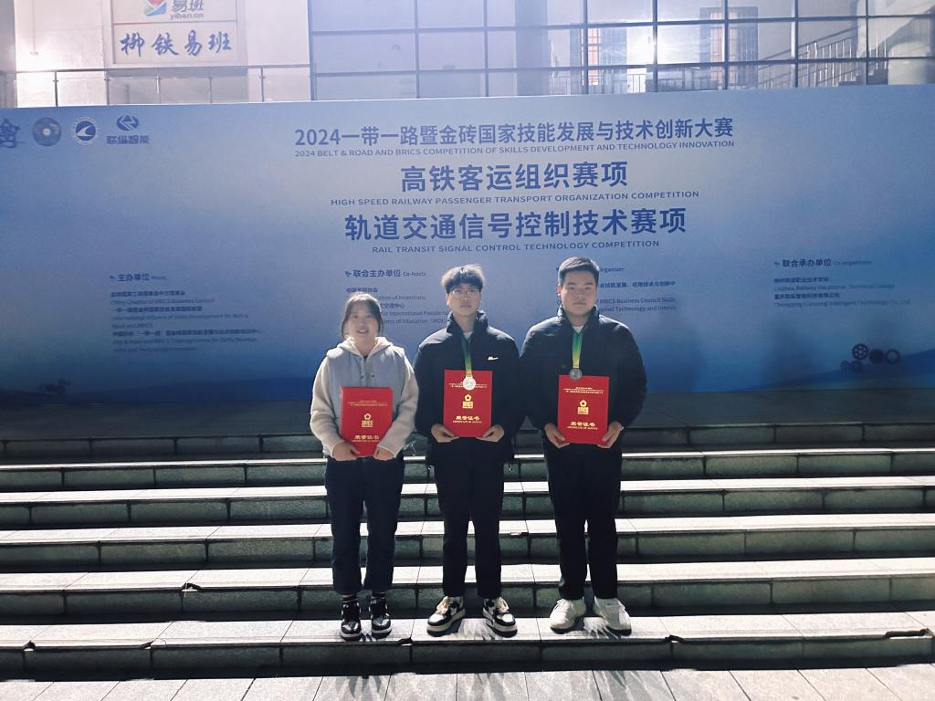 12月28日至31日,2024一带一路暨金砖国家技能发展与技术创新大赛轨道交通信号控制技术赛项全国总决赛在柳州铁路职业技术学院举办。经过与全国职业院校53支代表队的106名选手同台竞技、激烈角逐,我校大专组参赛选手轨道信号工程系薛晓存、曲家浩荣获二等奖,指导教师李知徽、霍智敏;中专组参赛选手轨道信号工程系郭郑飞、史崇辉,获得三等奖,指导教师李明哲、蔺苗苗。