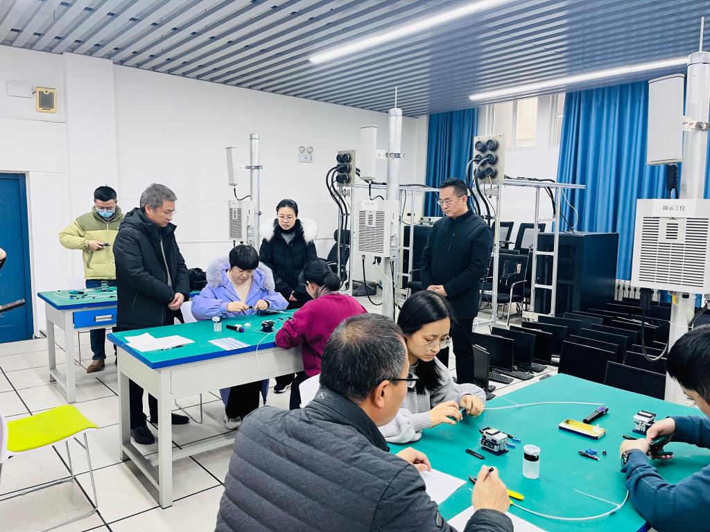 在活动前期,系里精心筹备,对全系专业教师进行了系统且全面的培训,确保每位教师深入理解实训要点和操作规范。培训过程中,由经验丰富的实训专业教师详细讲解了光纤连接器制作的工艺标准,并通过现场演示,让教师们直观掌握实际操作步骤与技巧,如光纤切割的精准度把控、连接器组装的细节处理等,为后续的达标比赛奠定了坚实的基础。