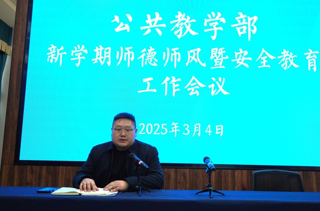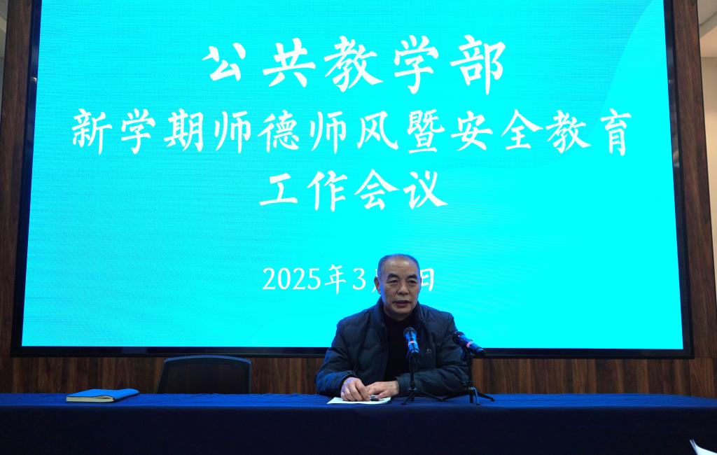 3月4日下午,公共教学部在劳动精神教育馆召开新学期师德师风暨安全教育工作会议。校党委副书记李文光及部门全体教职工参加,会议由公共教学部党支部书记、主任王振主持。