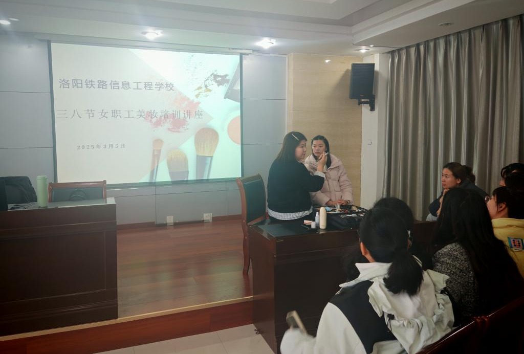 为丰富教职工文化生活,提升职业形象与自信,3月5日下午,校工会在图书信息楼三楼会议室顺利开展三八节女职工美妆培训讲座。