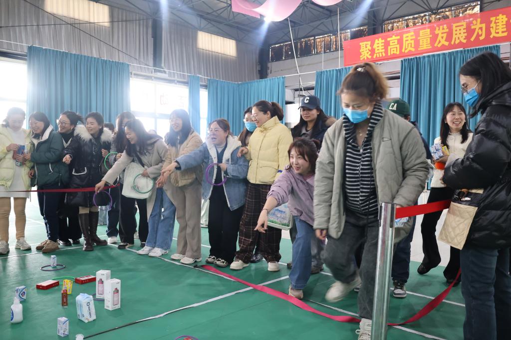 此次活动设置套圈、吹乒乓球接力和不倒森林三个游戏环节,活动促进了女教职工的身心健康,激发了工作热情,增进了教职员工间的友谊,活动在愉快和谐的氛围中圆满结束。