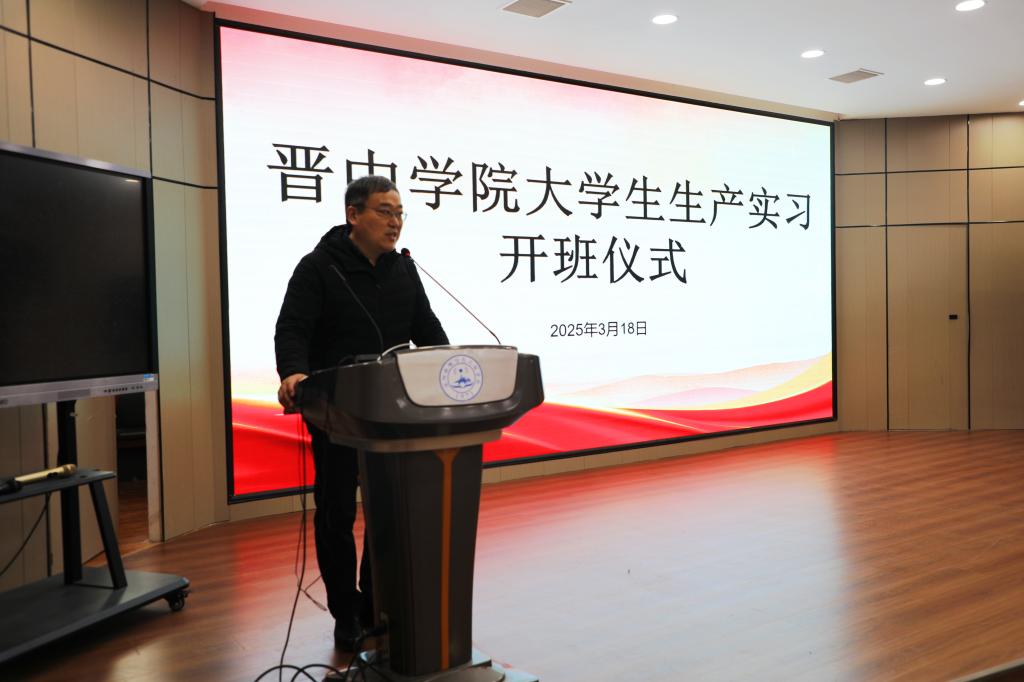 3月18日上午,晋中学院轨道交通信号与控制专业78名本科大学生,到校开展生产实习,我校在智慧大讲堂举行开班仪式。副校长尹亚波,洛阳大学生实习实训中心总经理张丽,轨道信号工程系主任张建平,晋中学院带队教师及培训团队出席开班仪式,仪式由轨道信号工程系教学主任李福建主持。