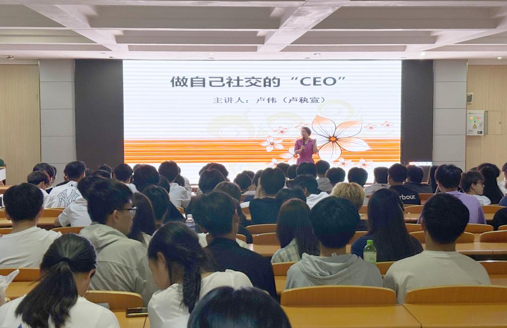 心理健康专题讲座于5月13日、15日在思政大讲堂接连开讲。公共教学部副主任张玉锋、心理健康教育中心常晓青、校外特聘心理辅导老师卢伟与校内各系共500名学生参加。卢伟老师以《做自己社交的“CEO”》为主题,通过精准巧妙的测试、深入浅出的讲解、生动鲜活的案例,教大家如何管理“社交能量账户”、打造“技能社交资本”,现场互动频繁,学生们积极参与讨论,气氛热烈。