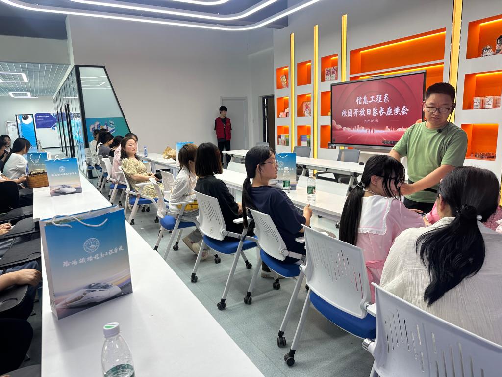 实践体验结束后,家长与任课教师在大数据产业学院参加了专题座谈会。郑波涛就国家职业教育新政策、特色专业建设、校企合作模式及学生实习就业情况作详细解读,并重点介绍近两年师生在各级技能竞赛中斩获的荣誉。通过“理论讲解+实操演示+成果展示”三位一体的呈现方式,信息工程系育人理念、师资力量及人才培养特色得到全方位展示。