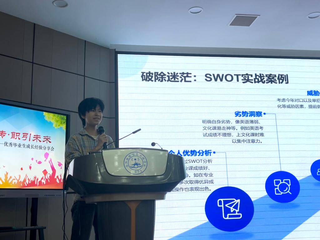 5月15日,信息工程系举办了一场精彩纷呈的“优秀毕业生经验分享会”,旨在帮助2024级学生更好地规划学业与职业发展,激发学习动力。活动特邀三位优秀毕业生重返校园分享成长经验,并邀请家长代表到场聆听,现场座无虚席,气氛热烈。