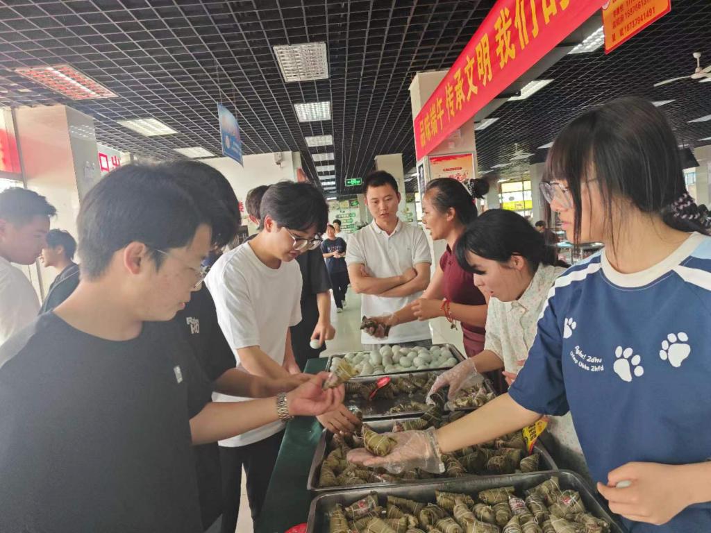 此次活动旨在弘扬中华民族传统文化,营造浓厚节日氛围,让师生感受端午节学校的温情关怀。同时,秉承勤俭节约中华美德,积极倡导践行光盘行动,反对铺张浪费,共建美好文化校园。本次活动共向广大师生免费发放香粽1500个、咸鸭蛋500枚。活动期间,餐厅服务人员给同学们系上五色手链,表达节日的祝愿!