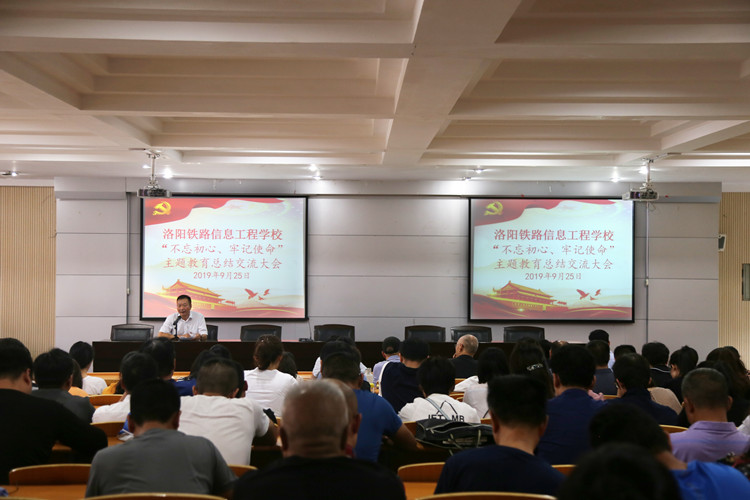 9月25日下午,我校在1号实训楼2楼多功能报告厅召开“不忘初心、牢记使命”主题教育总结交流大会。全体党员参加会议。会议由校党委副书记、校长韩耀煌主持。
